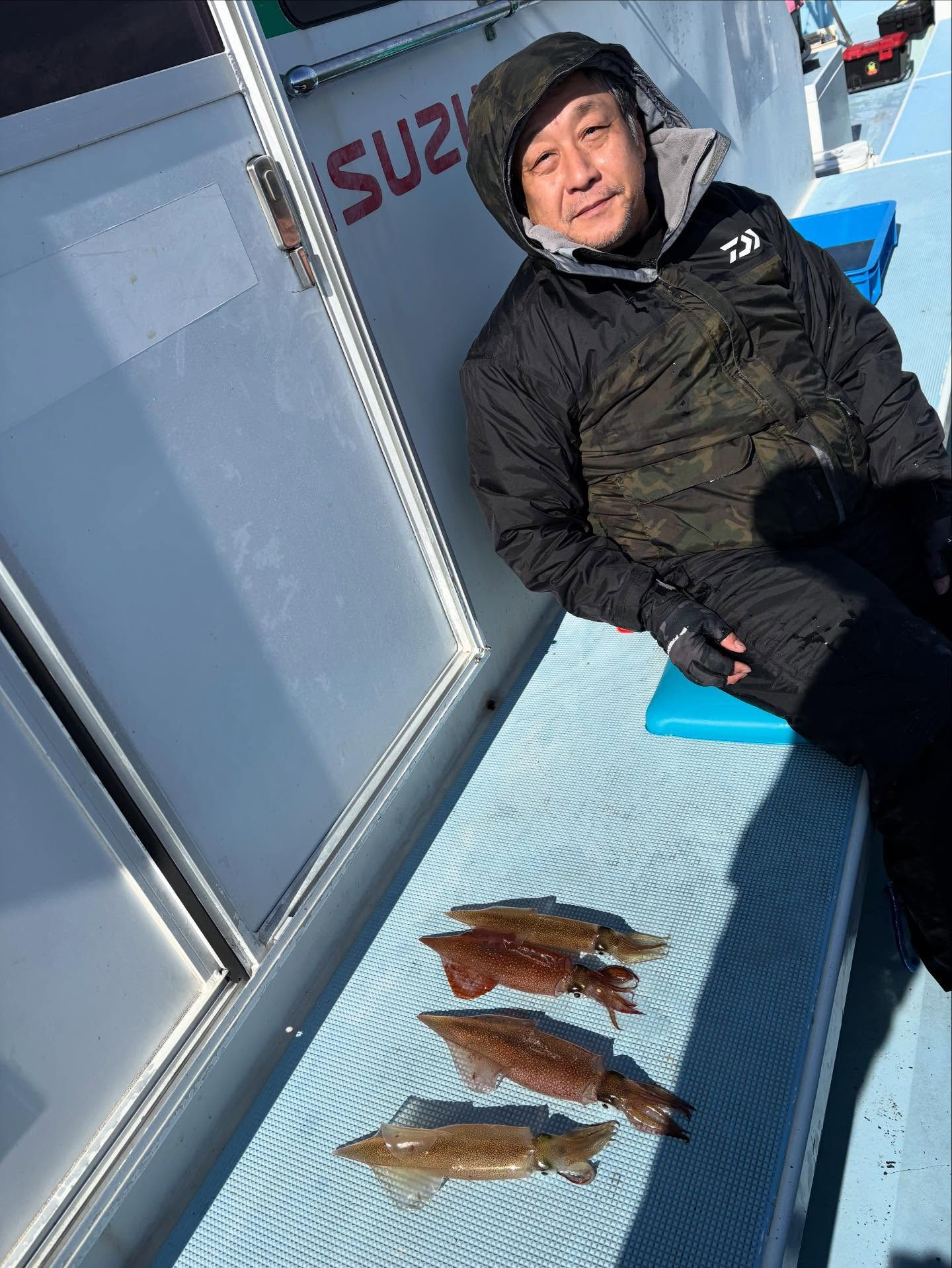 中盤までスルメを狙い、後半はヤリイカを狙いました。