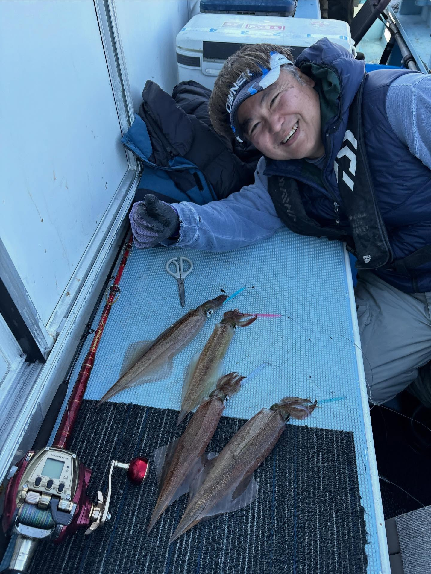 明日も出船しますが、仕掛けはスルメ用スタートで、ヤリイカ仕掛けもご用意下さい。